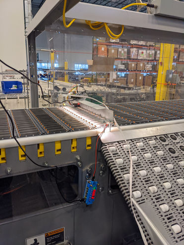 Running TwinCAT 3.1 on a Beckhoff CX-5120, the values from the optical flow sensors is read at 1 kHz. The exposure value is used to determine when rollers are present under the sensor due to absorptivity of the roller material. A voting system determines when all the sensors should be seeing rollers or not seeing rollers. Then x and y translations are measured to determine the roller deflection angle. If the deflection angle measured is not within a certain tolerance level, the roller is flagged as defective based on its location in the belt which is tracked as the system runs. Maintenance personnel can quickly and easily determine where the defective roller is.